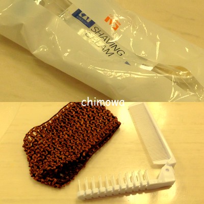 アメニティグッズは、カミソリとコーム以外(ボディスポンジ、ヘアバンド、コットン、綿棒、歯ブラシ・歯磨き粉セット)は人数分。